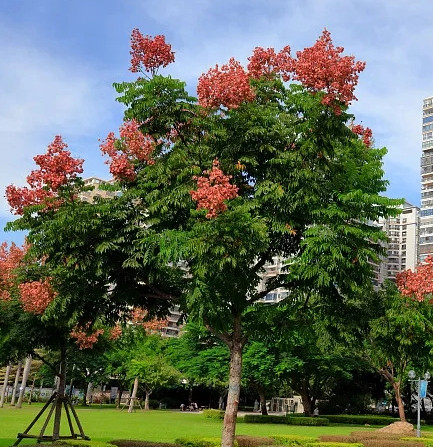 栾树春季嫩叶多为红叶,夏季黄花满树,入秋叶色变黄,果实紫红,形似灯笼,十分美丽;栾树适应性强、季相明显,是理想的绿化,观叶树种。宜做庭荫树,行道树及园景树,栾树也是工业污染区配植的好树种。观赏特性栾树春季观叶、夏季观花,秋冬观果,已大量将它作为庭荫树、行道树及园景树,同时也作为居民区、工厂区及村旁绿化树种。 [5] [8]