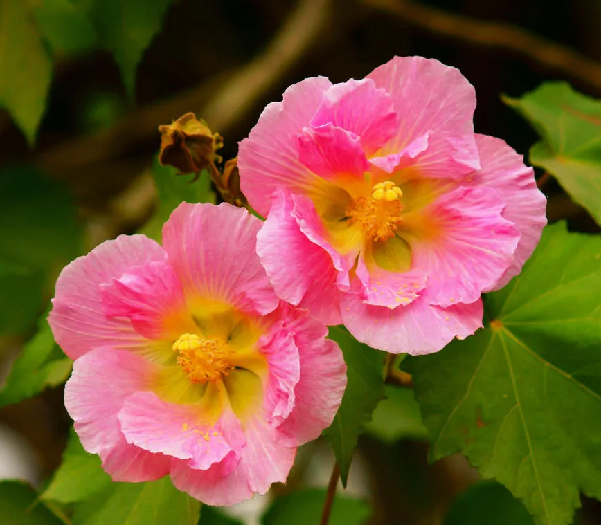 (1)扦插法扦插宜在木芙蓉落叶后进行。选取当年生粗壮枝条,截成15-20厘米的段子,集束放在向阳处沙藏越冬。来年春2-3月取出插条,插入露地苗床,地上露出部分不超过10厘米,上面盖一些草,以防春寒。扦插繁殖的成活率可达95%以上。