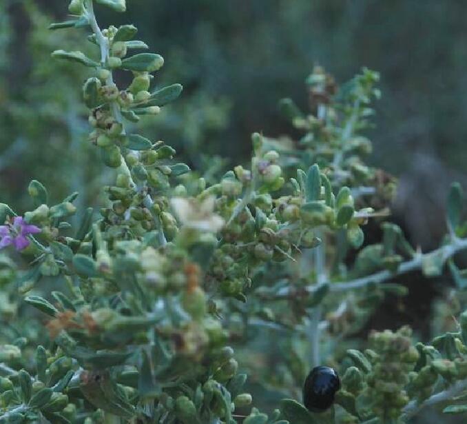 花两性兼有雌性,单生或2-5朵团集,大多着生于叶的近基部处;两性花花被杯状,长1-1.5毫米,黄绿色;雌花花被近球形,直径约0.7毫米,较肥厚,灰绿色;花被裂片卵状三角形,先端钝,果时增厚,使花被略呈五角星状,千后变黑色;雄蕊5,花药宽卵形至矩圆形,长约0.9毫米;柱头2,黑褐色,稍外弯。胞果包在花被内,果皮膜质。种子横生或斜生,双凸镜形,黑色,直径约2毫米,周边钝或锐,表面具清晰的颗粒状点纹,稍有光泽;胚乳很少。花果期7-9月。 [1] [7]