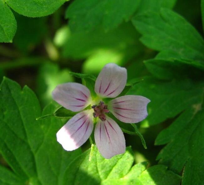 老鹤草是牻牛儿苗科老鹤草属多年生草本植物。 [2] 茎节明显。叶对生,叶片略呈五角形,叶两面有毛。花对生于叶腋,花瓣呈淡红色,有红色纵脉。果呈球形,成熟时由下向上开裂。种子呈长圆形。花期7~8月。果熟期10月。 [3] 因其蒴果顶端有坚硬长喙,形如"老鹳嘴"一般,故称其为老鹳草。 [4]