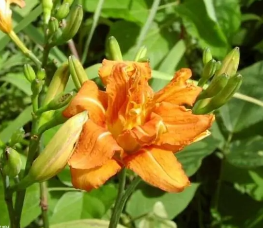 重瓣萱草(Hemerocallis fulva (L.) L. var. kwanso Regel):花桔黄色,花被裂片多数,雌雄蕊发育不全。中国北京等地有栽培。 [2]种质资源圃版权所有:糖醋里脊种质资源圃-https://pu.cnyaoboyuan.com/?p=795
