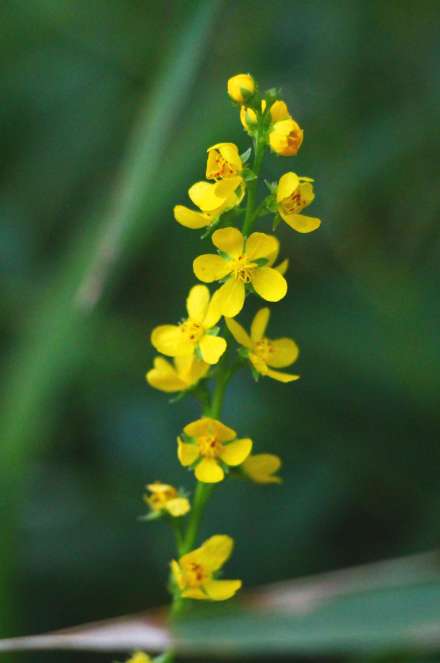 龙牙草(学名:Agrimonia pilosa Ledeb. )是蔷薇科龙牙草属的多年生草本植物,根多呈块茎状,茎的表面有稀疏柔毛;叶互生,为暗绿色,椭圆状卵形或倒卵形,有锯齿;花为穗状总状花序,花瓣为黄色,长圆形;果实为倒卵状瘦果,顶端有钩刺;花果期为5—12月。 [7] 龙牙草的名字来源与其形态有关,因形似龙牙而得名。 [8]