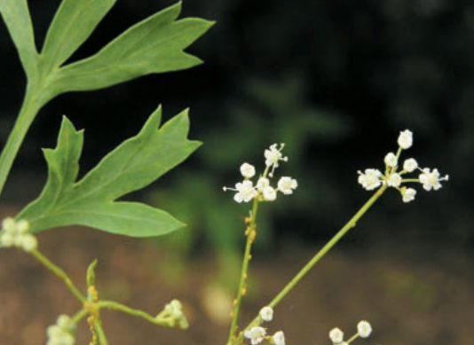 防风,伞形科防风属多年生草本植物,高30-80厘米。根粗壮,主根为圆锥形,分歧,淡黄棕、褐色。根头处被有纤维状叶残基及明显的环纹。茎单生,自基部分枝较多,斜上升,与主茎近于等长,有细棱,基生叶丛生,有扁长的叶柄,基部有宽叶鞘。叶片卵形或长圆形,长14-35厘米,宽6-8(-18)厘米,二回或近于三回羽状分裂,第一回裂片卵形或长圆形,有柄,长5-8厘米,第二回裂片下部具短柄,末回裂片狭楔形,长2.5-5厘米,宽1-2.5厘米。 [1] [4] [10]种质资源圃版权所有:糖醋里脊种质资源圃-https://pu.cnyaoboyuan.com/?p=944