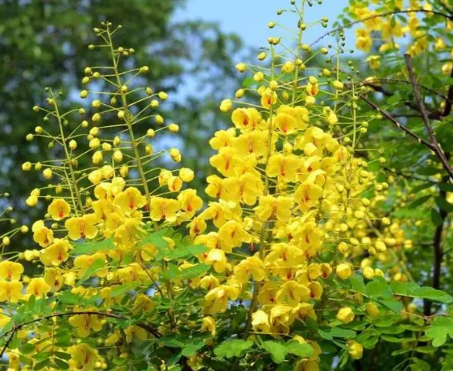 云实(Caesalpinia decapetala (Roth) Alston),豆科云实属藤本,树皮暗红色,枝、叶轴和花序均被柔毛和钩刺,羽片对生具柄,小叶膜质长圆形,总状花序顶生,总花梗多刺,花瓣黄色膜质圆形或倒卵形,荚果长圆状舌形,花果期4~10月。 [4] [6]
